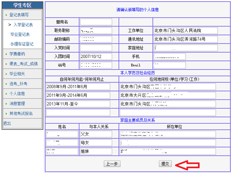 填写要尽量完整详细,将作为学籍档案保存,“本人学历及社会经历”和“家庭主要成员及关系”项,必须填写完整。