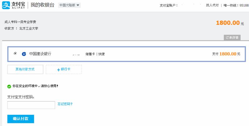 今年会北京地区全体在校生的学费均通过支付宝线上缴费。