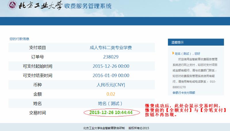 (1)请在线上付款过程中注意保护个人信息,保证个人资金安全!(不要在网吧等公用电脑上进行线上缴费操作)
