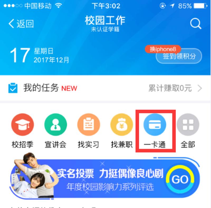 今年会官方网站【校本部】学生使用【支付宝】为校园【一卡通】充值的说明