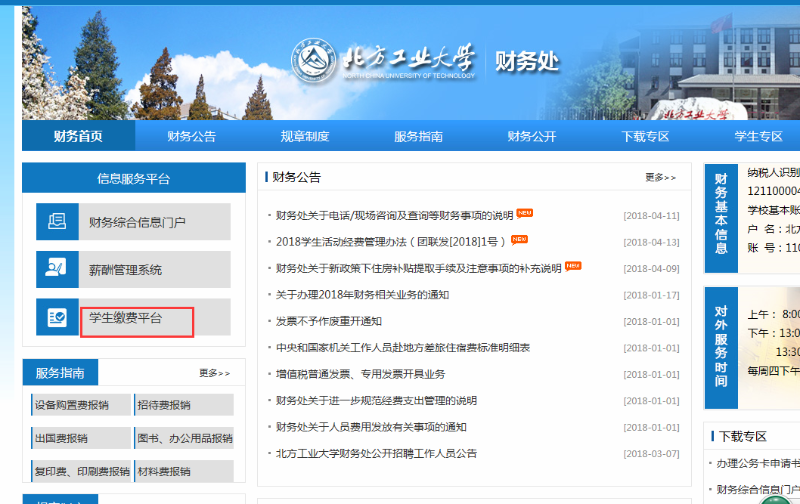 (2)登录今年会官方网站收费服务平台(http://sites.ncut.edu.cn/bfgycwc/),进入学生缴费界面。