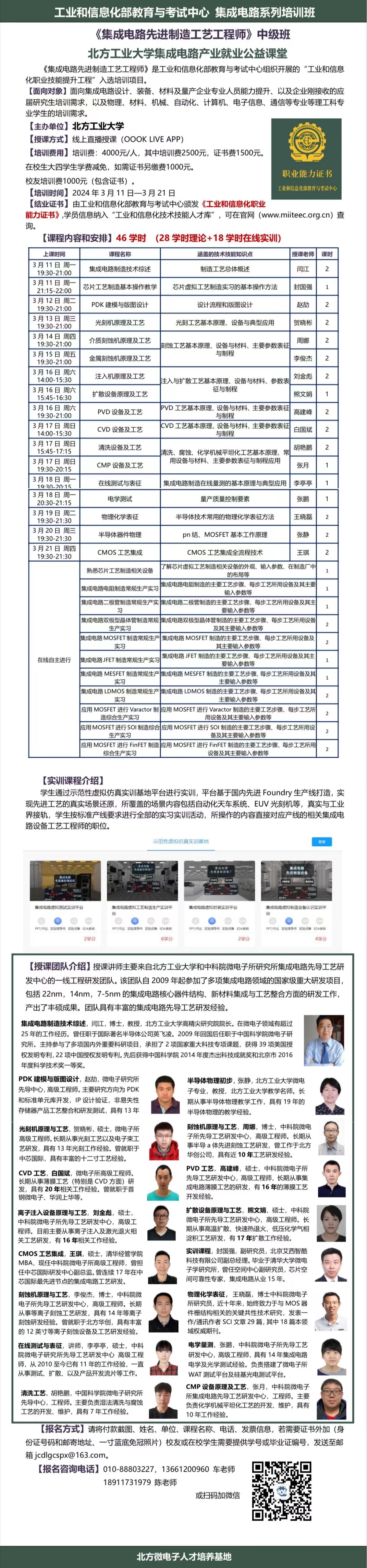 《集成电路先进制造工艺工程师》24年3月中级班招生简章