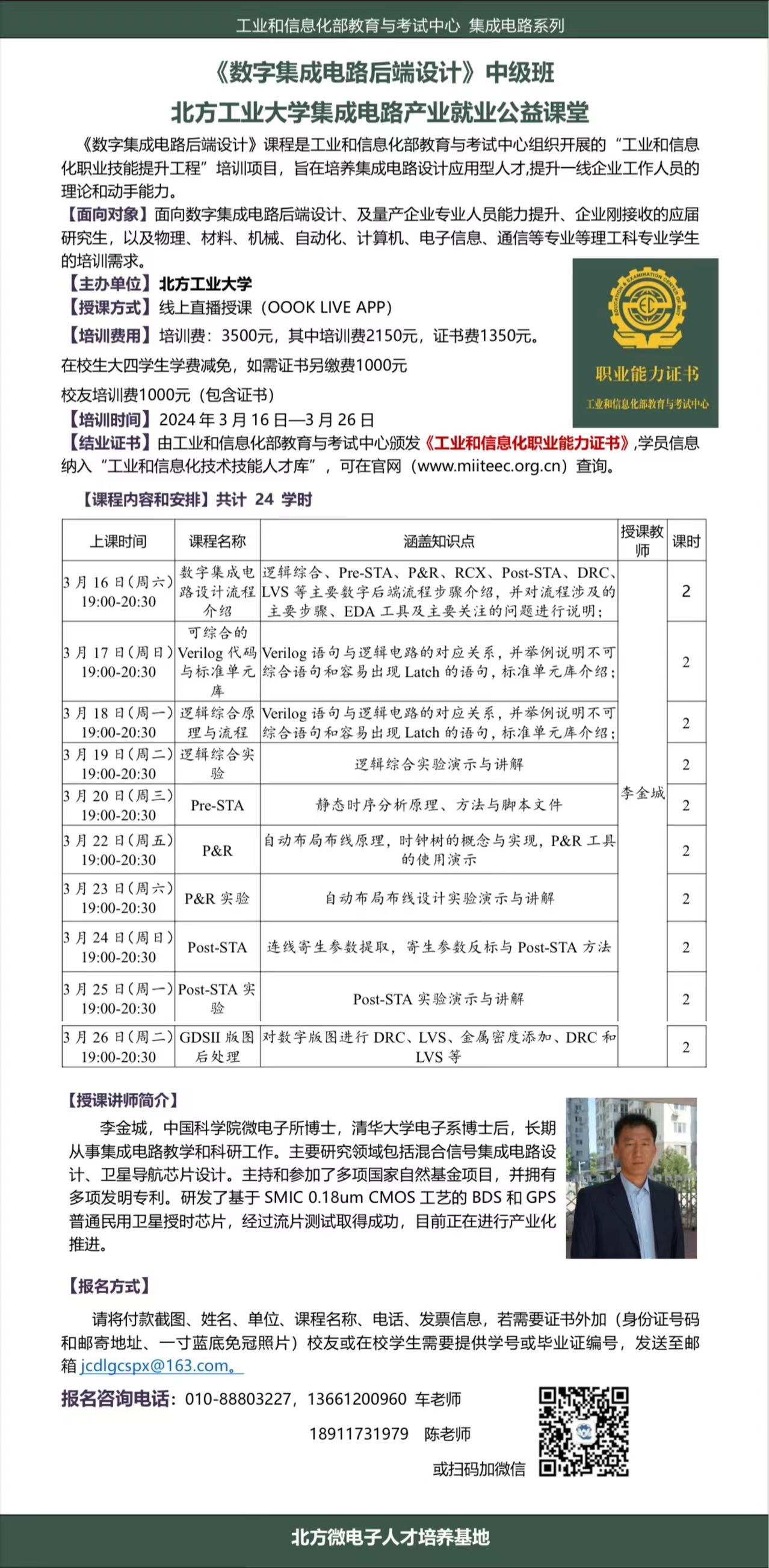 《数字集成电路后端设计》24年3月中级班招生简章
