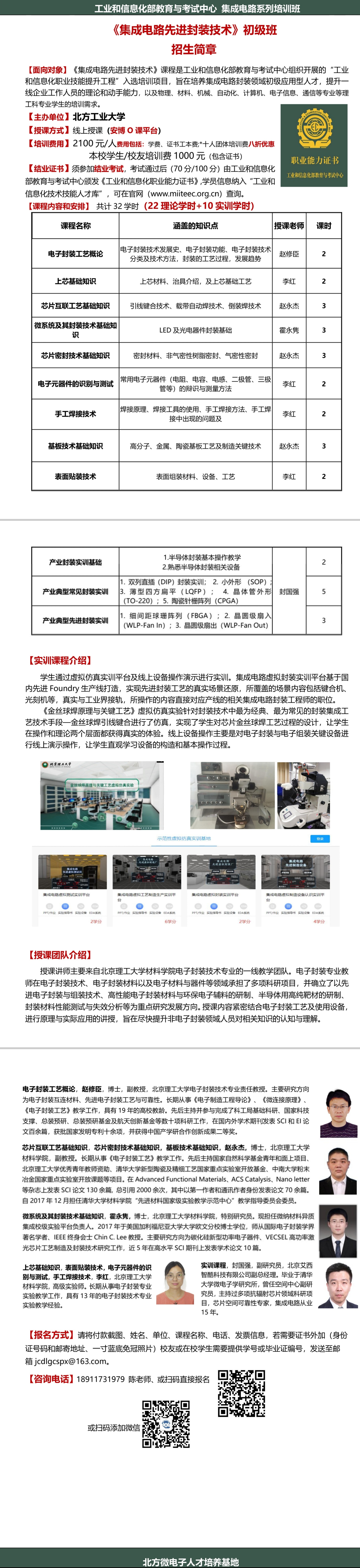 《集成电路先进封装技术工程师》初级班招生简章
